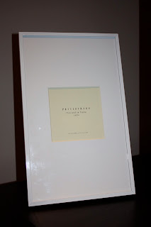 I love the oversized mat matched with the white metal frame. It holds a 5"x5" photo. I haven't decided where I want to put it yet. It may end up in the babe's room with his/her first picture.