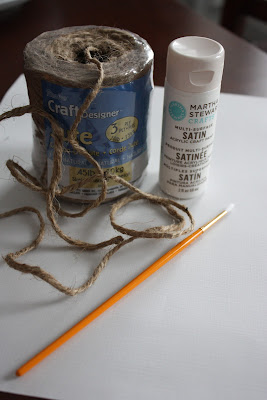 Now the banner is super easy to make. I purchased a sheet of gray scrap book craft paper that was on clearance for something like $.20 per sheet. I also used the white Martha Stewart craft paint that I purchased with the other paints above. To hang, I picked up soem jute rope at AC Moore a few weeks back along with some clothespin clips from Michael's.