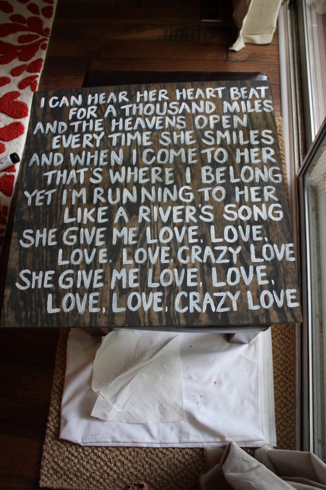 The same day I was brainstorming his gift, Nicole over at Me oh My posted a DIY Tutorial for Wood Stained Painting. Perfect! Why not do a painted version of our wedding song? Sometimes I honestly have the strangest luck when it comes to projects. Technically not a paper gift, but paper and wood both come from trees. Does that count?? It took me a few days to decide whether or not this was a feasible project to tackle. And if it didn't work out as easy as she made it look, I needed a back-up gift.